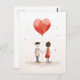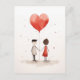 A minimalistic and heartwarming illustration of a couple holding hands, connected by a red, heart-shaped balloon that floats above them. The simple design, watercolor texture, and soft splashes of colour on a white background give a gentle, dreamlike feel to the artwork, symbolising love and togetherness in a pure, innocent way.