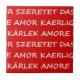 The word love in different languages. White on red. Dutch (liefde), English (love), German (liebe), Spanish (amor) Italian (amore), French (amour), Danish (kaerlighed), Swedish (karlek), Hongarian (szeretet), Albanian (dashuri)