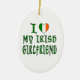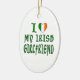Wanna make points with your Irish girlfriend? Of course you do. Use this item to impress her on her birthday, Christmas, Valentine's Day, and, of course, St. Patrick's Day. Design features heart-shaped flag of Ireland to read, "I love my Irish girlfriend". Great fun, any time for Irish-Americans, Irish-Canadians, and anyone of Irish descent.