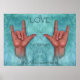 My oil pastel painting of two hands making the sign for "I Love You" in American Sign Language. Words read: "Love is a language we all understand".
