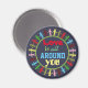 Circle of people holding hands with slogan "Love is all around you" on magnet. (changeable background colour)