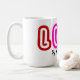 This vibrant and heartwarming coffee mug design features the word 'LOVE' written in large, colourful, bubble-style letters. Each letter is outlined in white and filled with different shades of red and pink, creating a joyful and eye-catching look. Below the word 'LOVE,' the phrase 'is all you need' is written in a black, cursive font with a small heart symbol above the letter 'i' in 'is.' The combination of the bold letters and the delicate script conveys a positive and uplifting message, perfect for expressing love and affection with every sip