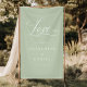 Elevate your wedding décor with this timeless, light-green banner welcome sign, featuring the heartfelt phrase "Love is all you need!" Designed with a modern, minimal, and elegant handwriting font, this sign is the perfect way to greet your guests.