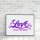 Love Is All You Need Hand Lettered Purple-Pink Poster