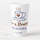 Love is Brewing brown blue bridal shower add name Latte Mug