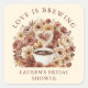 Love is Brewing Brown Floral Coffee Heart Bridal Square Sticker