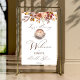 Love is brewing coffee fall bridal shower welcome sign poster editable template instant digital download cappuccino coffee cup brown roses fall flowers elegant calligraphy bridal shower personalised entrance decor welcome sign