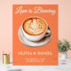 Perfect for coffee-loving couples or cosy wedding themes, this acrylic sign features latte-inspired tones and charming fonts.
