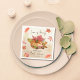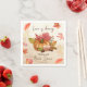 Love is brewing fall autumn bridal shower monogrammed customised napkins template, watercolor pumpkin cinnamon spices cup of tea maple leaves, brown background for autumn fall themed bridal shower personalised table decor personalised name napkins.