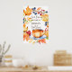 Love is brewing fall themed bridal shower welcome sign template poster instant digital download, watercolor fall leaves and berries wreath and pumpkin cup of tea for autumn themed tea party bridal shower welcome signs