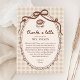Celebrate the bride to be with this Love is Brewing Gingham Coffee Bridal Shower Thank You Card. Featuring a watercolor latte topped with heart foam art, coffee beans, "Thanks a Latte" in trendy script calligraphy, and a vintage scalloped frame over a warm beige gingham background, this cozy cafe inspired design brings rustic charm to your bridal shower stationery. Perfect for expressing gratitude to guests, this editable thank you card pairs beautifully with coordinating “Love is Brewing” invitations and party decor.