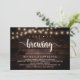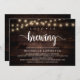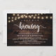 Modern Calligraphy Bridal shower invitation card (Love is brewing), in rustic dark wood string lights design themed. Invite the guests with this perfect Invitation Card. Add your bridal shower details in matching wording.