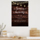 Love is Brewing, Modern Rustic, Wedding Rehearsal Dinner Welcome Poster, in brown wooden background, cottage string lights themed.