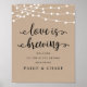 Love is Brewing, Modern Rustic, Wedding Rehearsal Dinner Welcome Poster, in black script, brown kraft, string lights themed.