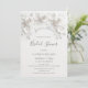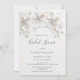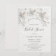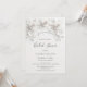 This "Love is in bloom" bridal shower invitation features 3D white roses and a the bridal shower quote in an elegant handwritten script on a white background.