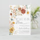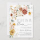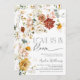This elegant bridal shower invitation is adorned with painterly florals in rich autumn tones—terracotta, mustard, cream, blush, and burgundy—layered gently against a clean white backdrop. The balanced composition offers a refined sense of movement and depth, evoking the beauty of a fall garden at its peak.