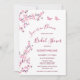 This "Love is in bloom" bridal shower invitation features pretty pink cherry blossoms and two butterflies on a white background.