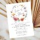 This design features a delicate watercolor wreath made of wildflowers in shades of blue, red, orange, violet, and gold. Perfect for spring and summer outdoor weddings.