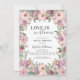 Beautiful roses and hydrangea bridal shower invitation features pretty pink roses, purple-ish hydrangea, eucalyptus and other greenery done in watercolor paints. Love is in Bloom in gorgeous typography adds to the lovely style. See coordinating items in our shop, Enchanted Finch.