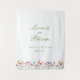 This Love in Bloom bridal shower backdrop features romantic watercolor wildflowers and soft botanical colors, creating a joyful and elegant setting for a spring or summer bridal shower. Inspired by the trending garden party aesthetic and modern botanical bridal shower themes, this tapestry backdrop is perfect for the bride who loves natural, floral celebrations. Hang it behind the dessert table, use it as a photo booth backdrop, or style it with wildflower centerpieces and pastel decor. A beautiful statement piece for a blooming celebration.