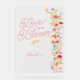 Love is in bloom wildflowers floral bridal shower welcome transparent sign featuring pretty hand painted vibrant and bright orange, pink and yellow flowers watercolor illustration with a modern elegant script font saying Love is in bloom, with bohemian greenery foliage. Perfect for Spring, summer outdoors garden bridal or wedding party.