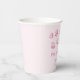 Romantic and sweet Valentine them bridal shower paper cup featuring illustration of pink heart shaped macarons with a text that says "love is in the air."