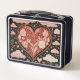 This is a standard metal lunchbox that appears to work just fine. We designed this box ourselves with an uploaded photo and custom text on the front and back. It looks absolutely beautiful except the front of the lunchbox is not centered like it shows in the photo. The print borders don't align with the inset flat part of the box where the preview photo online showed it perfectly centered in there. The back looks nice and centered though.