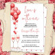 Announce the celebration of love in style with these enchanting Valentine-themed bridal shower invitations! Adorned with whimsical red balloons, delicate hearts, and elegant champagne glasses, the front of these invitations sets the romantic tone with the sweet declaration, 'Love is in the air.'