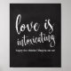 An elegant cutting edge wedding sign, features the text "Love is Intoxicating" in a extroverted script font, the brush texture adds a spontaneous and playful feeling. The background colour can personalised according to your needs and preferences, please contact me if you have any special request.