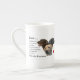 This mug is imprinted with a Bach Solos Suite for Cello. It was purchased as a thank you gift for a professional cellist friend who often performs this work. The cup is made of a high-grade ceramic and is fairly light. The walls are not too thick and it is a small to medium size. It's well finished, has a high-gloss glaze, and looks very elegant. The Bach Solo Suite score on the example I received was clear and had high contrast. Even though the staffs were small, the music was easy to read. The cellist who received this cup immediately knew what the music was as soon as she set eyes on it.