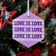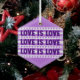 Love is Love with Purple hearts and stripes Glass Ornament. The perfect purple way to state your beliefs this holiday season. Keep for yourself or give as gifts.