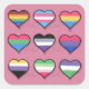 Sticker inspired by Lin-Manuel Miranda's speech at the 2016 Tony Awards. Features nine hearts decorated with Pride flags.