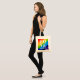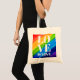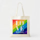 This Pride Tote Bag is decorated with LOVE IS LOVE in bold white letters on a watercolor rainbow background of red, orange, yellow, green, blue, and purple.