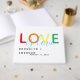 Personalise this rainbow Love is Love design with your names and wedding date.
