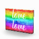 A colourful rainbow watercolor with the quote love is love in a modern white typography.