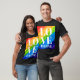 This Pride T-shirt is decorated with LOVE IS LOVE in bold white letters on a watercolor rainbow background of red, orange, yellow, green, blue, and purple. Original Watercolor © Michele Davies.