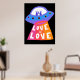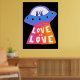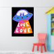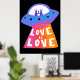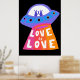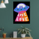LOVE IS LOVE Spaceship Aliens Colourful Rainbow Poster