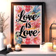 Celebrate love in all its forms with this vibrant "Love is Love" wall art. Featuring a bold script font surrounded by watercolor flowers, hearts, and a rainbow-inspired background, this artwork is perfect for adding a touch of inclusivity and joy to any space. Whether for your home, office, or as a meaningful gift, this design promotes a message of love, acceptance, and unity.