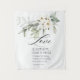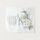 Elegant Christian wedding tapestry depicts a beautiful floral watercolor bouquet with simple botanical garden white flowers and greenery. It features Bible Verse 1 Corinthians 13:4, "Love is patient, love is kind. It does not envy, it does not boast, it is not proud."