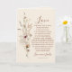 Christian wedding congratulations greeting card depicts a beautiful nature Boho floral watercolor with simple white, blush, pink and earth tone colours of wildflowers and foliage. It features Bible Verse 1 Corinthians 13:4-8, "Love is patient, love is kind. It does not envy, it does not boast, it is not proud. It does not dishonour others, it is not self-seeking, it is not easily angered, it keeps no record of wrongs. Love does not delight in evil but rejoices with the truth. It always protects, always trusts, always hopes, always perseveres. Love never fails." The greeting, prayer can be personalised or deleted for a hand written message.