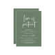 This is the Wedding party invitation Rescheduled (postponed / postponement) card (Love is patient), change the date card, in the modern minimal romantic simple clean design sage green theme. It is the perfect way to make the event reschedule announcement to your friends and family.