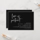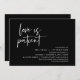 This is the Wedding party invitation Rescheduled (postponed) card (Love is patient), change the date card, in the modern minimal romantic simple clean design classy black theme. It is the perfect way to make the event reschedule announcement (save our new date) to your friends and family.