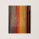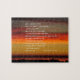 This custom jigsaw puzzle uses a quote from 1 Corinthians 13: 4-8 as an overlay on an art print I created using a watercolor technique of a sunset. The setting is a sunset over the Pacific Ocean along the coastline in San Diego, California. As a Christian artist, I seek to make sure that the biblical quote I am using is a good marriage with the art print I put it on. In this particular case, I was working with this Bible verse trying to find a suitable print to put it on. When I came across this one, I knew it was a fit. Finalising the font and positioning the verse on this print was a tedious process of trial and error. I am pleased with the final look, as the font I chose looked best with the picture.