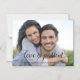 Change the date of your wedding featuring your photo and a Love is Patient quote with modern handwriting script letters and personalised to inform your guests that "Our New Wedding Date is...", using one or two lines of text. ©dotpattern