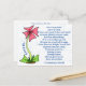 This LOVE IS postcard features I Corinthians 13:4-8a written on the front, which says "Love is patient, Love is kind, It does not envy, it does not boast, It is not proud, it is not rude, It is not self-seeking, It is not easily angered, It keeps no record of wrongs. Love does not delight in evil but rejoices with the truth. It always protects, always trusts, always hopes, always perseveres. Love never fails." The verse is set against the backdrop of a Custom designed pink flower with wisps of blue clouds in the background. This is a great way to express your faith and encourage others. There is plenty of space on the back for your custom note.