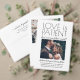 Invite family and friends to a simply elegant wedding reception with this stylish modern "love is patient but we couldn't wait" 4 photo collage invitation. All wording is simple to personalise for any reception only celebration, including a post elopement party, vow renewal ceremony, sequel wedding, 1st anniversary, cocktail hour or dinner party. Customise it to include the details of your choice, such as marriage date, dress code, rsvp, website, etc. (IMAGE PLACEMENT TIP: An easy way to centre a photo exactly how you want is to crop it before uploading to the Zazzle website.) The modern minimalist black and white design features four pictures of the newlywed couple, trendy handwritten script calligraphy, and chic typewriter style typography. Whether or not you eloped due to the covid pandemic or downsized to a smaller, more intimate minimony or micro wedding, the happily ever after party can still get started. Congratulations to the bride and groom!