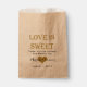 A custom favour bag reading "Love is sweet. Thank you for sharing our special day." Personalised with the bride and groom's names written over a heart, and the wedding date. Perfect for favours, candy buffets, and more!