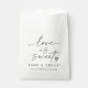 Elegant Wedding Favor Bags – Share something sweet with your guests using these modern black and white “Love Is Sweet” favor bags. Featuring minimalist handwriting script and a small heart design, they’re perfect for holding treats or desserts at your wedding reception. A simple and elegant addition to your dessert table or favor display that complements any modern wedding décor.