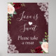 Burgundy Blush Floral Lace - Love is Sweet Please Take One Sign Poster.