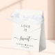 Chic light cream favour box for your wedding featuring "Love Is Sweet" written in simple modern typography and an elegant script with swashes, your first names joined together by a heart and your wedding date.